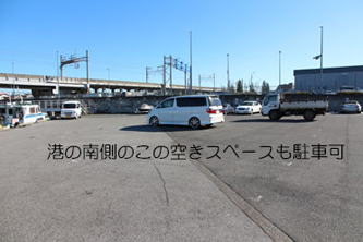 | 寒川港内が駐車スペースとなります。 |
