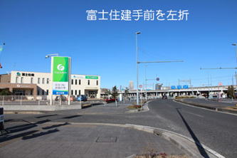 Uターン後、100メートルほど戻り、富士住建ショールーム手前を左折します。