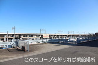 道なりに進むと千葉船業協同組合の建屋の先に寒川港へ降りるスロープがあります。