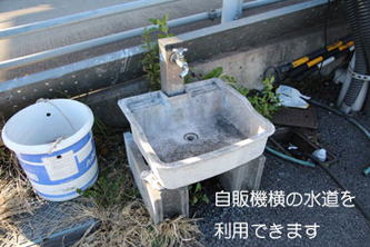 | 港上の組合建屋のトイレ、港内自販機横にある蛇口(ホースもあります)を利用できます。 |